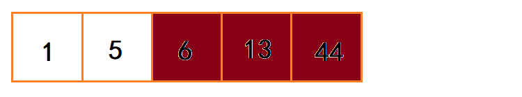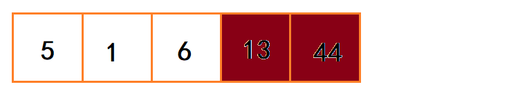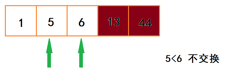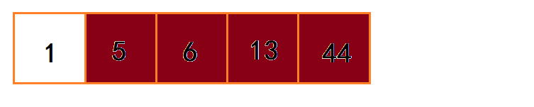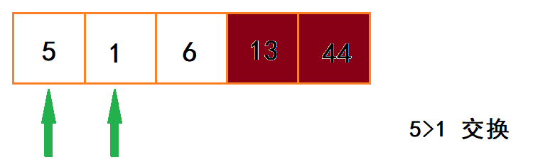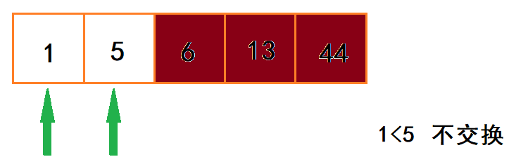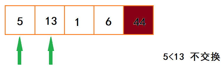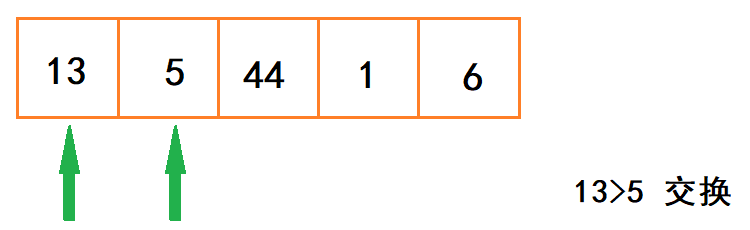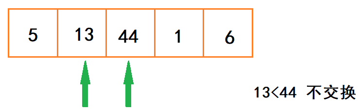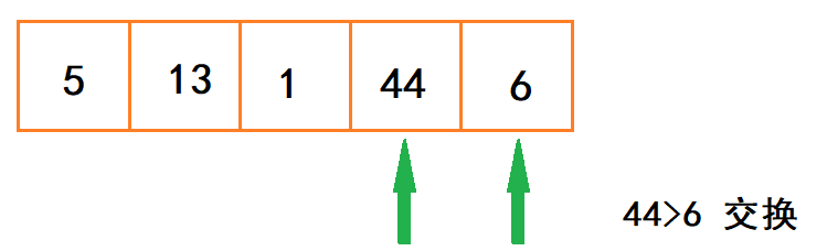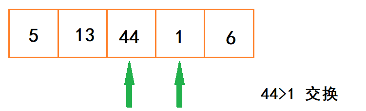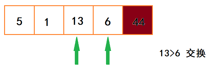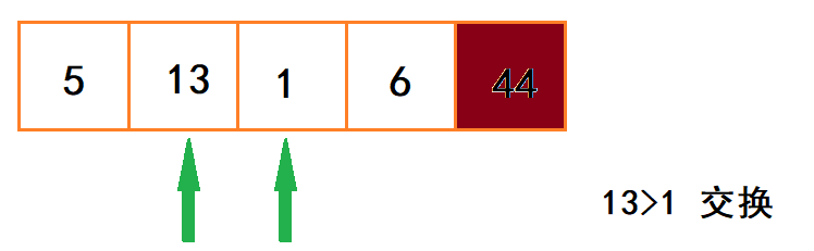 第一次排序:在[13,5,44,1,6]中找出最大值,将最大值放在序列的末尾位置