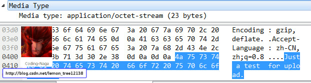 7. 再检查Media Type内容,从这里可以看到已经捕获到了文件内容: