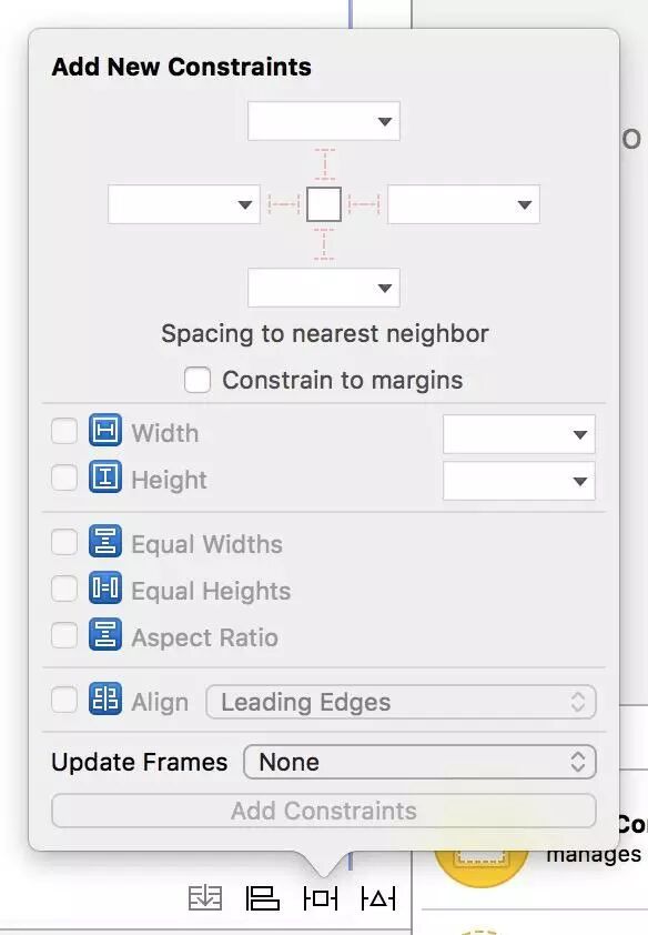 在 Storyboard 中,AutoLayout 有以下 3 个常用面板:
