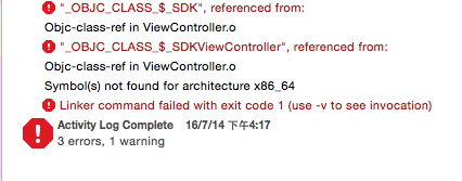 那是因为虚拟机sdk的编译包也有不同的像i386,x86_64,arm,arm64等,这是我们所需要包的Charts.framework不对,这里不细说了,想了解的可以百度i386,x86_64,arm,arm64的区别,这里最简单直接的解决办法是在编译sdk时选择什么虚拟机,那运行时也用什么虚拟机,但如果sdk编译时用5s、6、6 plus、6s、6s plus编译,那么这些的sdk在这些虚拟机上都能通用,这样也不用考虑那么多了。