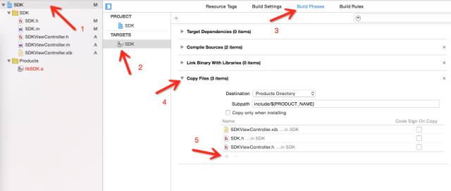 按图操作就能把文件暴露出来,暴露需要被调用的头文件,注意,如果暴露的头文件里包括控制器,而且控制器是有xib文件的,那么xib一定也得暴露出来,否则等下在其他工程里调用的时候,找不到xib的。
