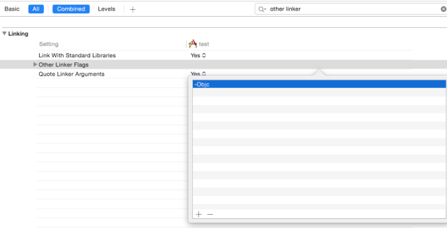 再搜索other linker,给other linker flags加上 -Objc 和 -all_load,-all_load视情况加,可不加下面有说明