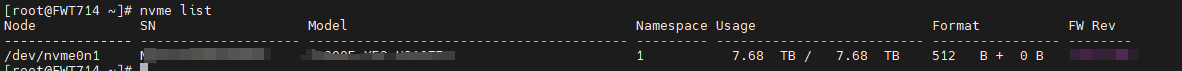 nvme list #查看所有连接到当前系统的nvme设备,SN相同只能识别出1个