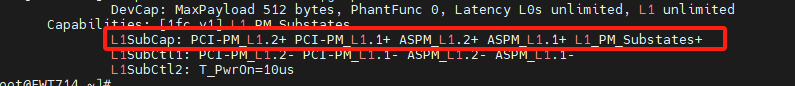 5 lspci -n -s e4:00.0 -vvv|grep L1 #查看功耗是否支持L1.2(L1.2+表示支持)