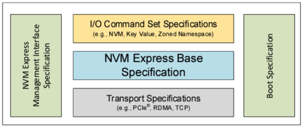 - NVMe Base:定义了一种协议,用于主机软件通过各种基于内存的传输和基于消息的传输与非易失性内存子系统进行通信。