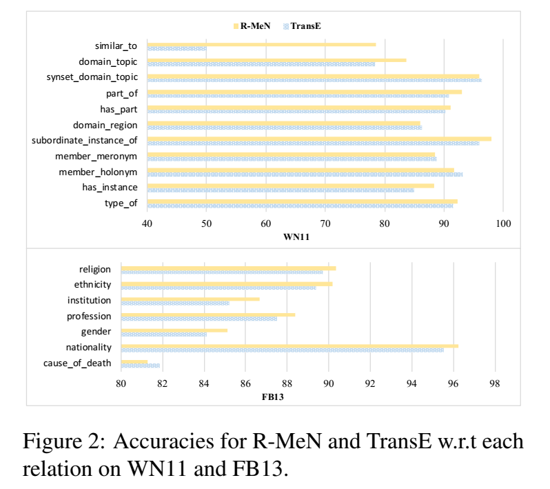 还比较了具体每个关系上 R-MeN 与 TransE 的效果: