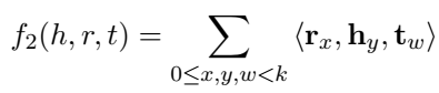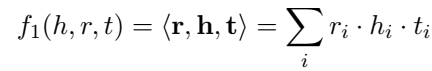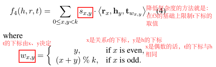 这样就会使得 \(f_2(h,r,t) != f_2(t,r,h)\),因此可以建模非对称关系。(这个地方死活没想明白。。。)