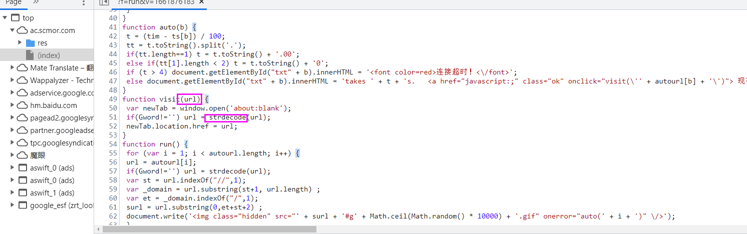 发现 autourl这个变量,我们继续去断点那看是如何调用的 扣下来