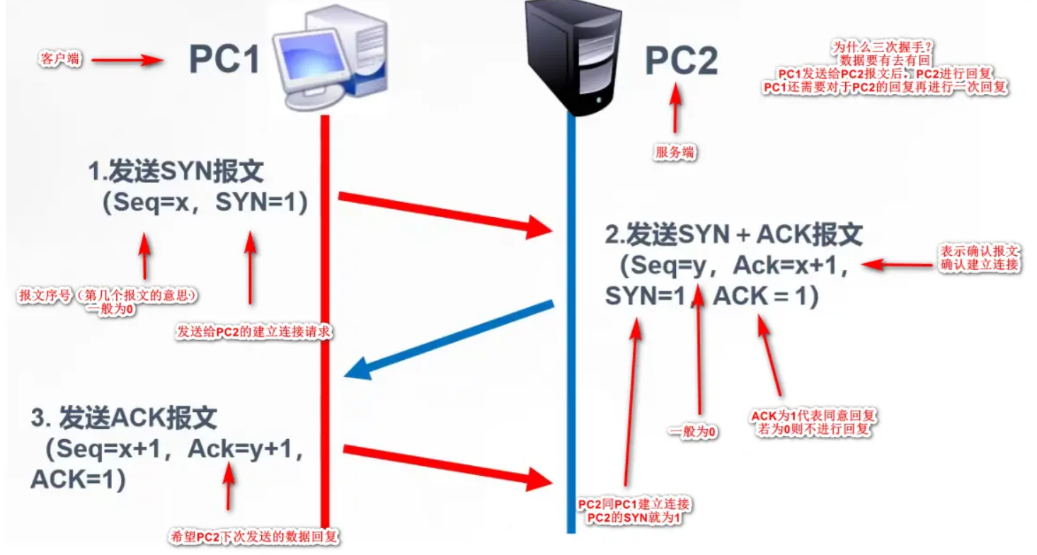首先,想给大家一张两台PC进行通讯的三次握手内容图进行分析: