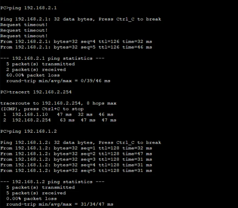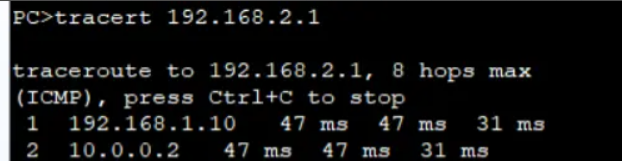 (4)用PC2 ping PC3,再用PC2 ping PC1并追踪