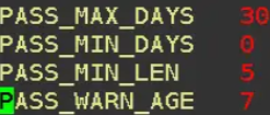 - PASS_WARN_AGE #密码过期前多少天开始提醒 示例: