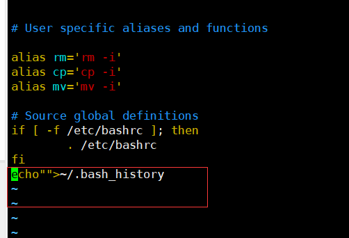 1. 临时修改历史命令条数。只针对当前用户,退出登录后失效。 [root@localhost ~]# export HISTSIZE=200 2. 永久修改历史命令条数。编辑配置文件,设置历史命令条数。 [root@localhost ~]# vim /etc/profile //设置历史命令条数记录为200条 HISTSIZE=200 [root@localhost ~]# source /etc/profile //刷新配置文件,使文件立即生效 3. 注销时自动清空历史命令 [root@localhost ~]# vim ~/.bash_logout echo "" > ~/.bash_history 4. 登录时自动清空历史命令 [root@localhost ~]# vim ~/.bashrc echo "" > ~/.bash_history