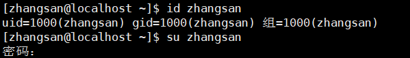 uid=1000(zhangsan) gid=1000(zhangsan) 组=1000(zhangsan)