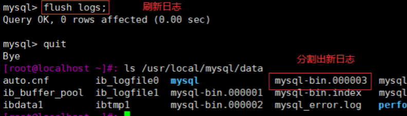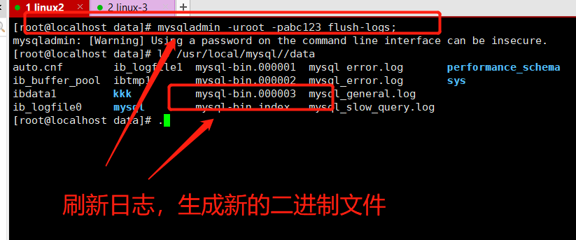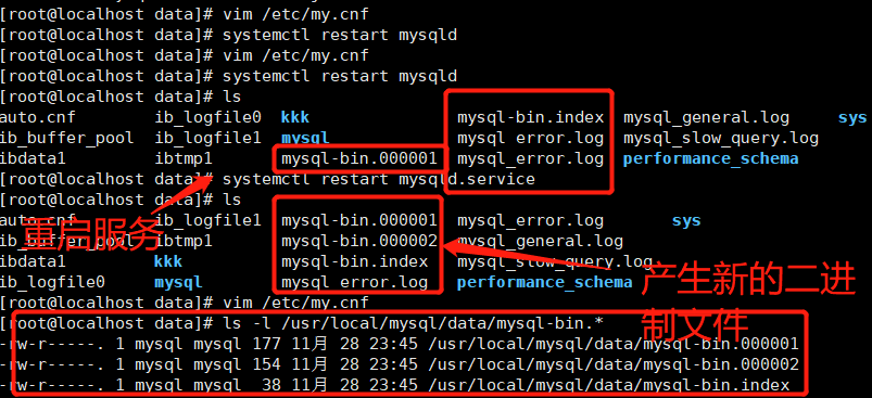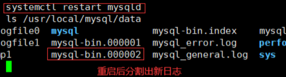 每次重启 mysql 或 在数据库中 "flush logs"刷新日志之后,会生成一个新的二进制日志。