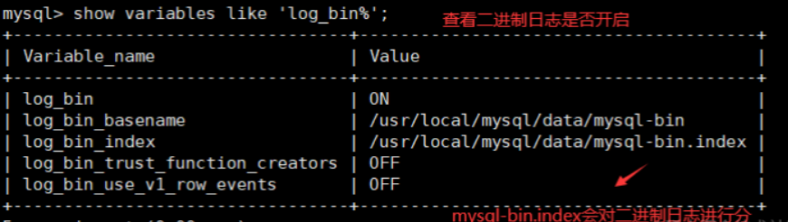 vim /etc/my.cnf [mysqld] log-bin=mysql-bin #也可以log_bin=mysql-bin #使用相对路径,则文件存储在默认目录/usr/local/mysql/data/中