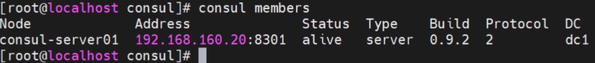 consul agent \ -server \ -bootstrap \ -ui \ -data-dir=/var/lib/consul-data \ -bind=192.168.160.20 \ -client=0.0.0.0 \ -node=consul-server01 &> /var/log/consul.log &