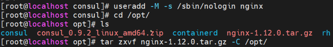 mkdir /opt/consul cp consul_0.9.2_linux_amd64.zip /opt/consul cd /opt/consul unzip consul_0.9.2_linux_amd64.zip mv consul /usr/local/bin/