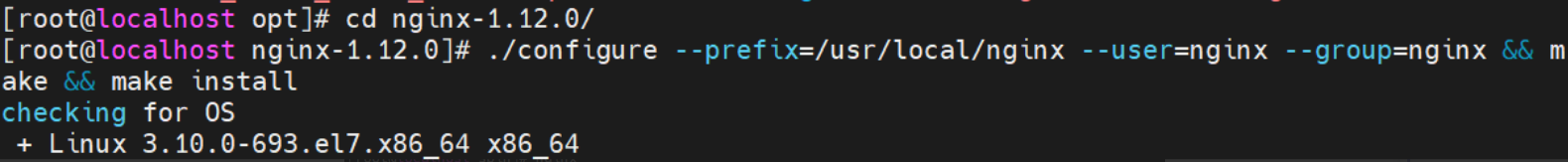 yum -y install pcre-devel zlib-devel gcc gcc-c++ make useradd -M -s /sbin/nologin nginx tar zxvf nginx-1.12.0.tar.gz -C /opt/ cd /opt/nginx-1.12.0/ ./configure --prefix=/usr/local/nginx --user=nginx --group=nginx && make && make install ln -s /usr/local/nginx/sbin/nginx /usr/local/sbin/