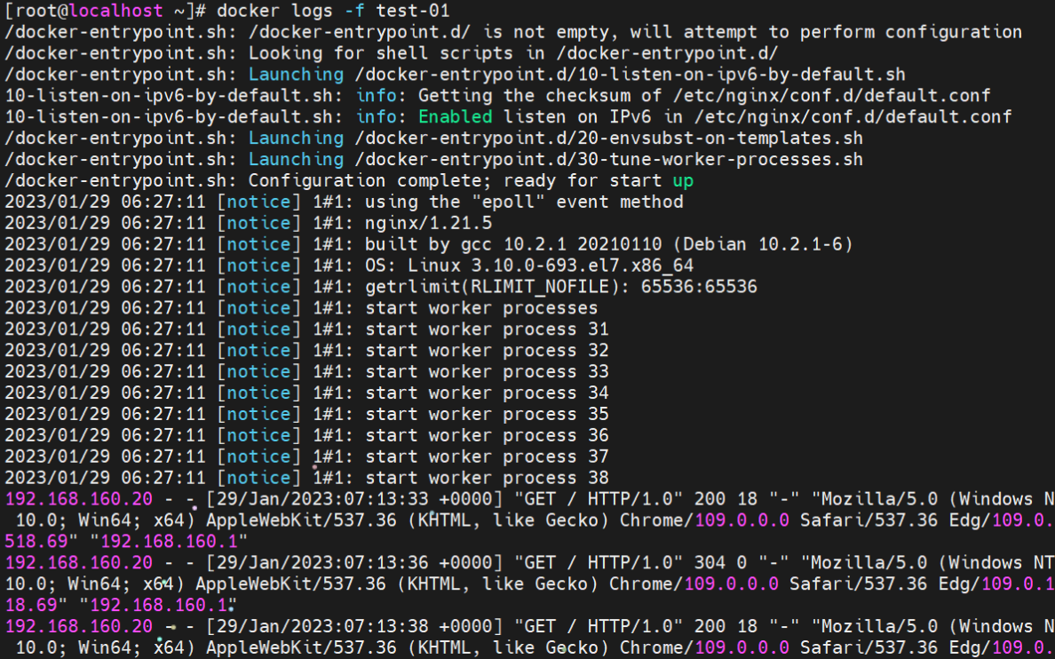 docker logs -f test-01 docker logs -f test-02 docker logs -f test-03