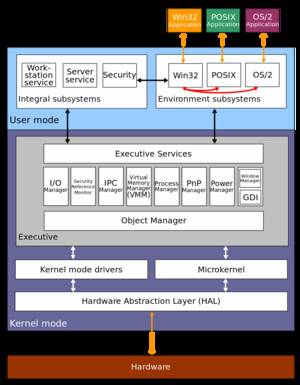 (图:常见的Windows操作系统的软件架构,是非常复杂的,不必细看,可跳过)