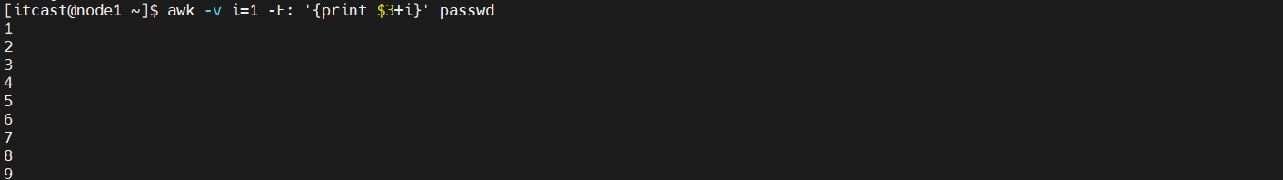 (4)将passwd文件中的用户id增加数值1并输出