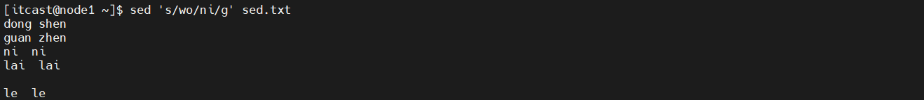 (3)将sed.txt文件中wo替换为ni