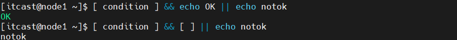 (4)多条件判断(&& 表示前一条命令执行成功时,才执行后一条命令,|| 表示上一条命令执行失败后,才执行下一条命令)
