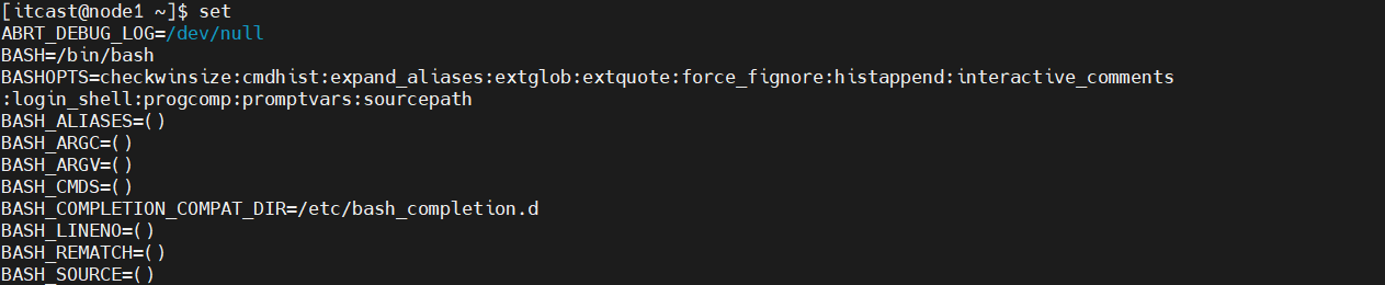 (2)显示当前Shell中所有的变量:set
