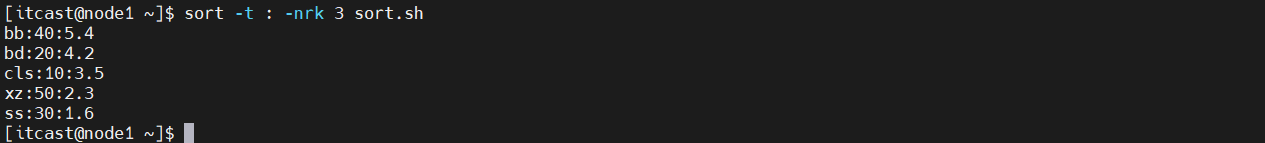 (1)按照“:”分割后的第三列倒序排序。