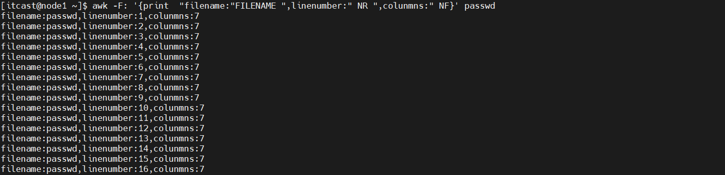 (1)统计passwd文件名,每行的行号,每行的列数