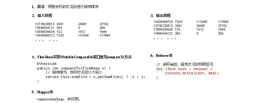 根据手机流量案例产生的结果再次对总流量进行倒序排序。