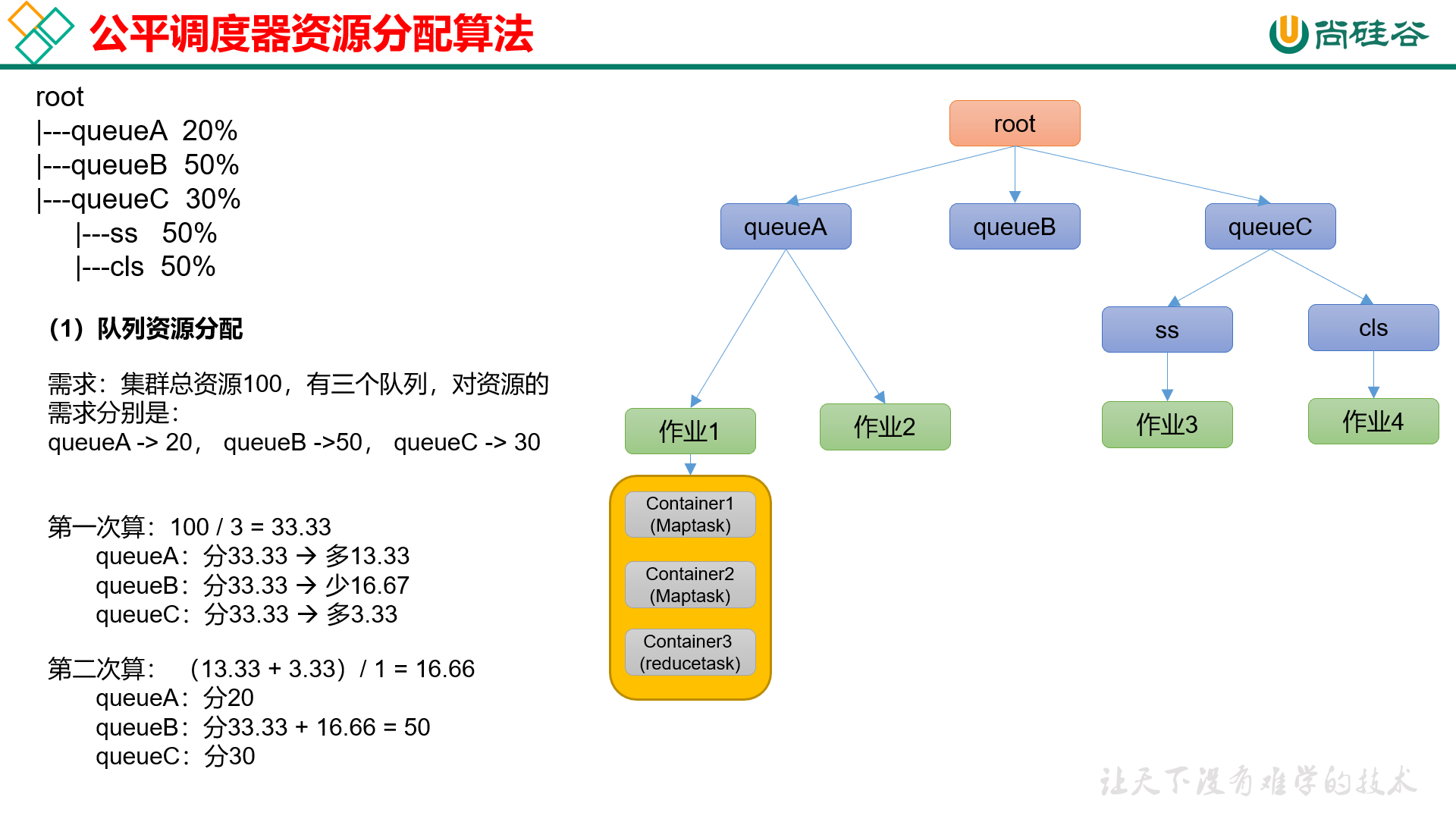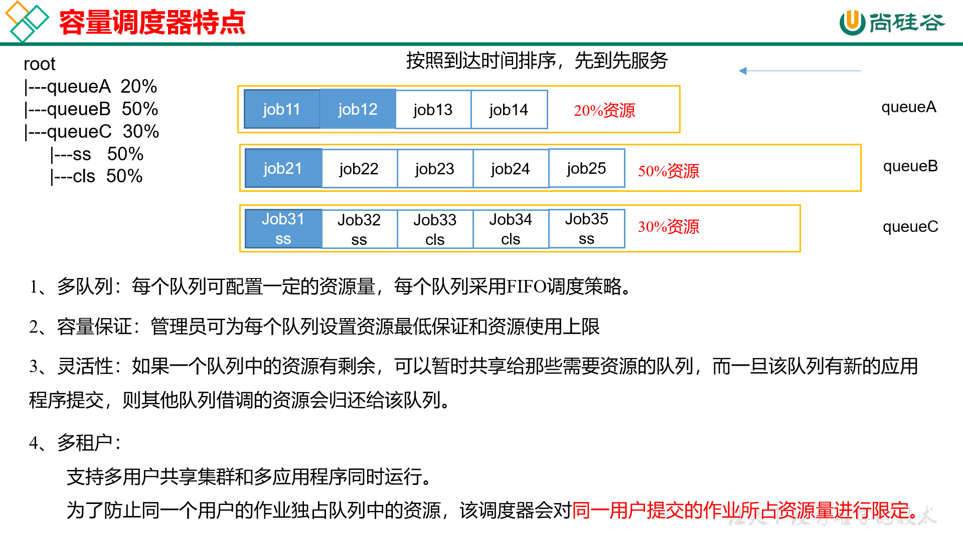 容量保证:管理员可为每个队列设置资源最低保证和资源使用上限