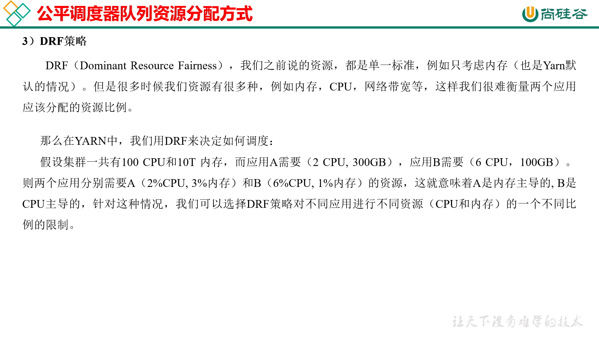 那么在 Yarn 中,我们用 DRF 来决定如何调度: