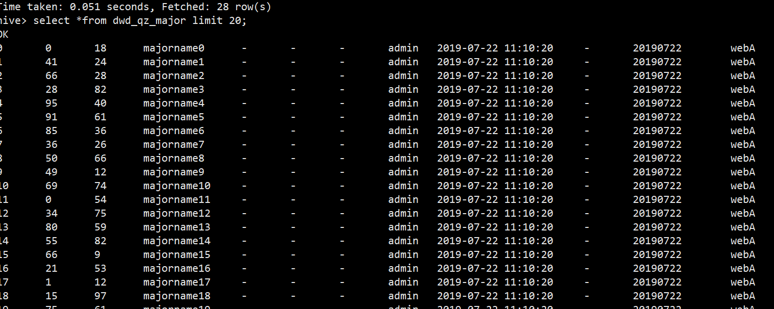 hive> create database dwd;创建数据库后,边界tablesDDL.txt在最上方加上use dwd;