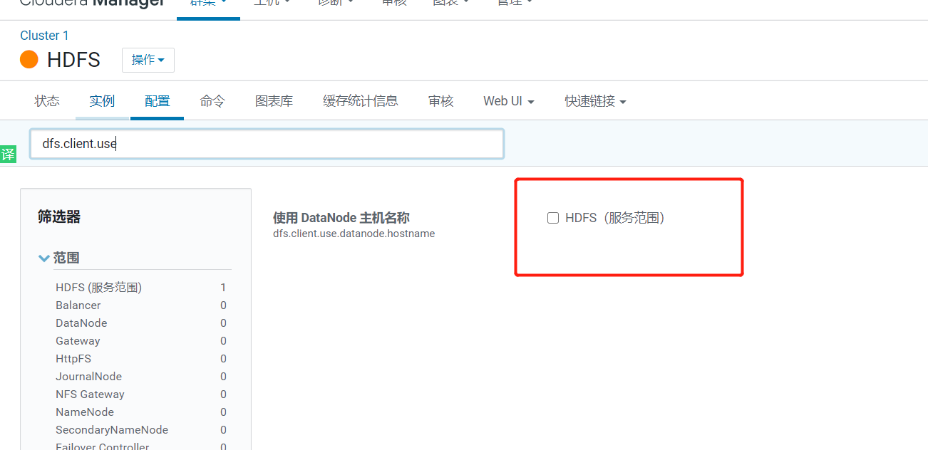 </property>最后注意:重点由于我的Apahce集群和CDH集群3台集群都是hadoop101,hadoop102,hadoop103所以要关闭域名访问,使用IP访问,CDH把钩去了