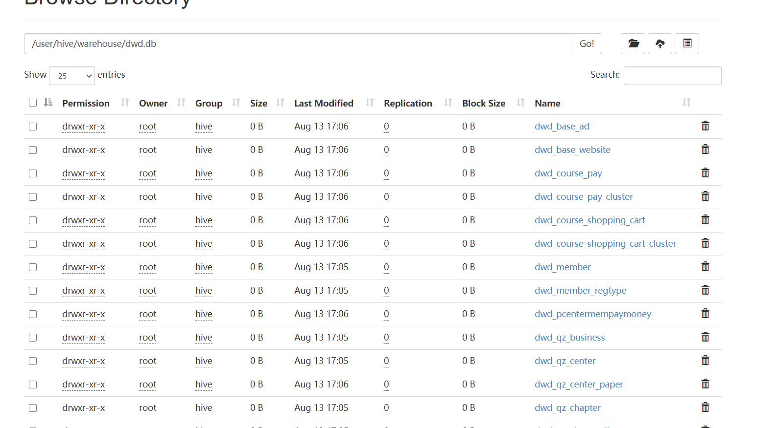 启动完毕后,将apache集群中,hive库里dwd,dws,ads三个库的数据迁移到CDH集群