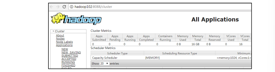 numChildren = 0web 端查看 hadoop102:8088 和 hadoop103:8088 的 YARN 的状态