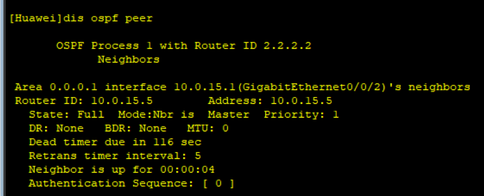 计时器的修改:interface gigabitethernet 0/0/1 注意:修改此参数,需要将区域内所有路由器,统一配置。dead time默认是hello time 的4倍,一直都是。