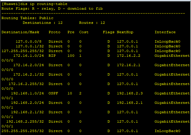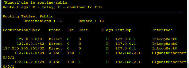 配置完成后R1的路由表