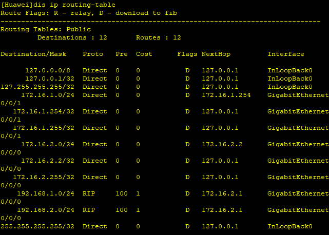 (2)在R1和R2上配置RIP