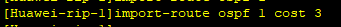 当引入OSPF路由至RIP时,如不指定cost值,开销值默认为1。