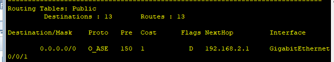 可以看到R3从OSPF协议学到一条默认路由。