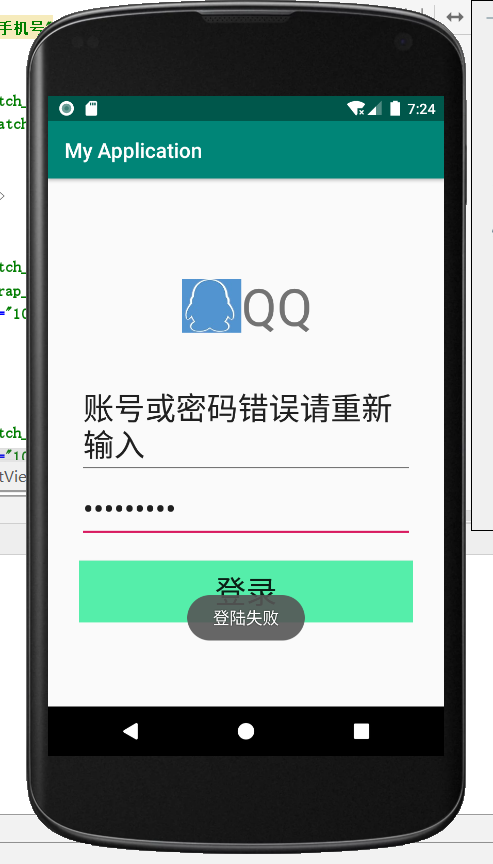 Toast.makeText(MainActivity.this,"登陆失败",Toast.LENGTH_SHORT).show();