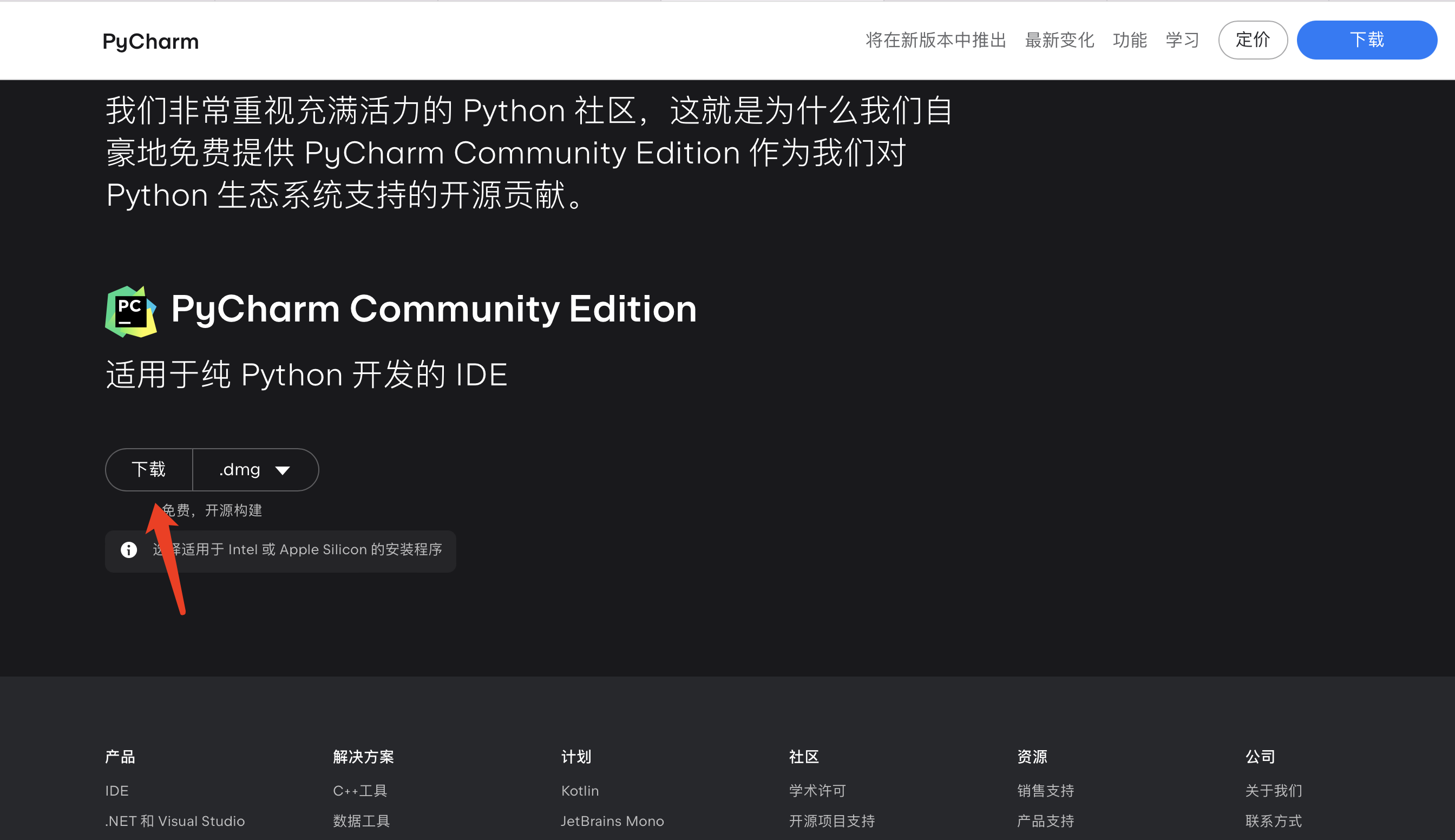 地址:https://www.jetbrains.com.cn/pycharm/download/?section=mac