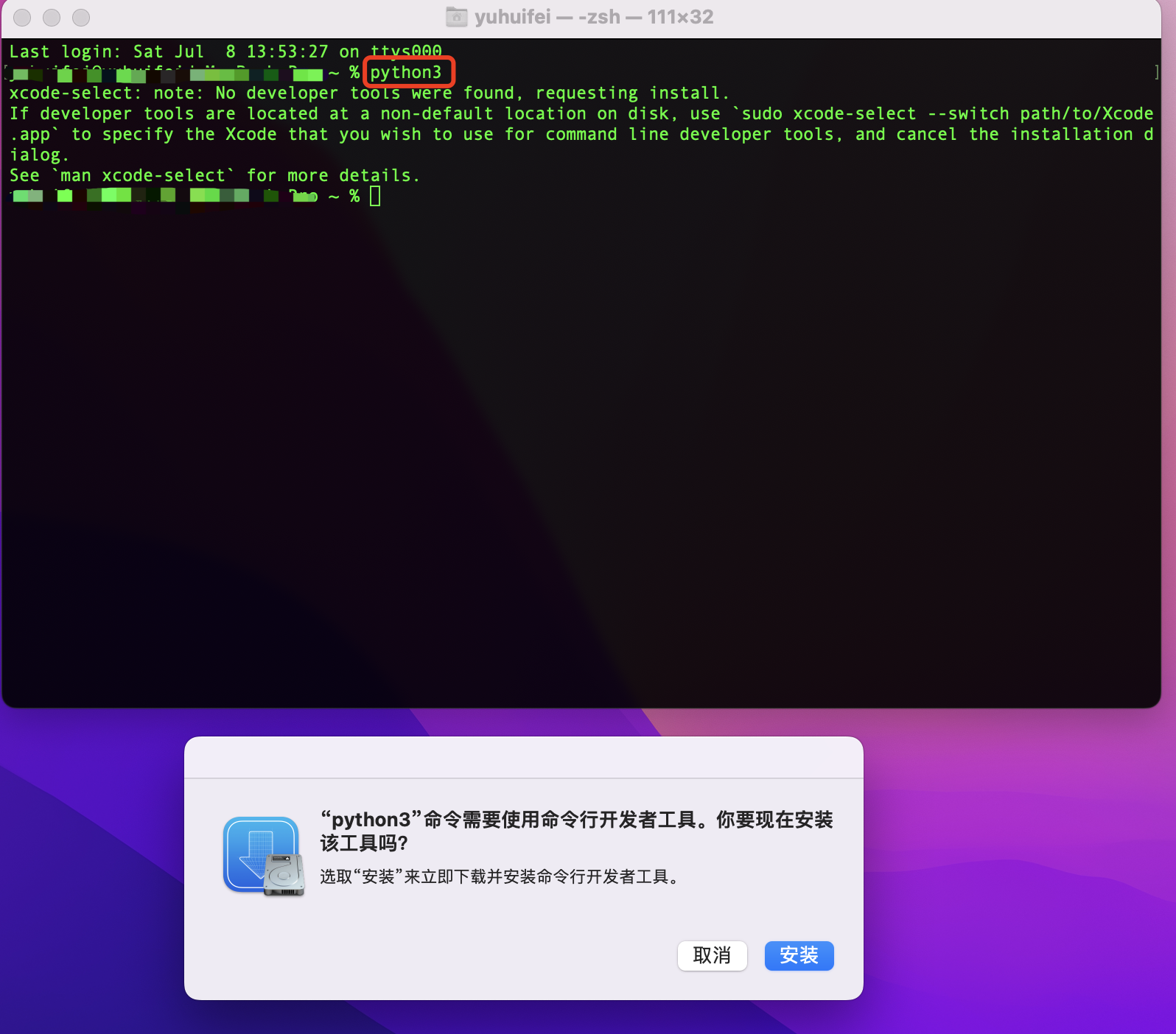 1、在命令行窗口输入python3,会弹窗提示安装python