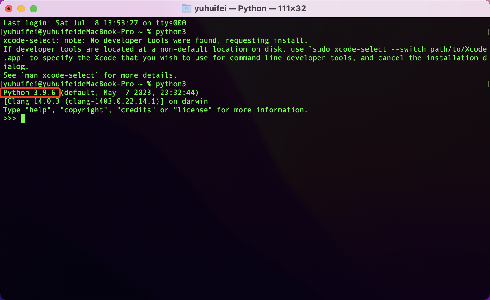 2、安装好之后再次输入python3可进入交互界面,以及版本号