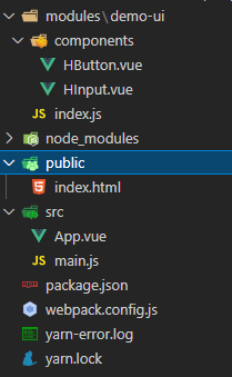 yarn add webpack@4.44.2 webpack-cli@3.3.12 webpack-dev-server@3.11.2 @vue/compiler-sfc@3.1.2 vue-loader@16.5.0 vue-style-loader@4.1.3 vue-template-compiler@2.6.14 html-webpack-plugin@4.5.0 css-loader@4 sass-loader@10.1.1 sass@1.45.2 -Dpackage.json
