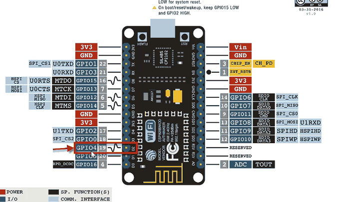 1. GPIO 通用数字输入输出引脚(可接受电压<=3.3V);GPIO4通用输入输出引脚4;只有0和1两种情况
