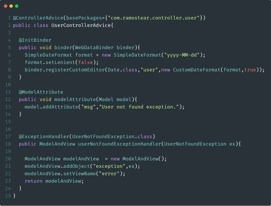 此外,在有必要的时候,可以使用@InitBinder在类中进行全局的配置,还可以使用@ModelAttribute配置与视图相关的参数。使用@ControllerAdvice注解,就可以快速的创建统一的,自定义的异常处理类。