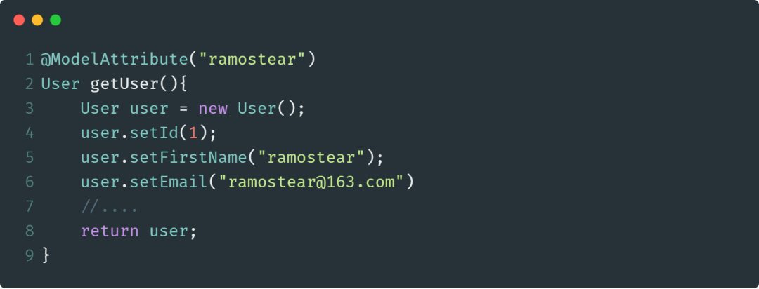 特别地,如果使用@ModelAttribute对方法进行标注,Spring会将方法的返回值绑定到具体的Model上。示例如下: